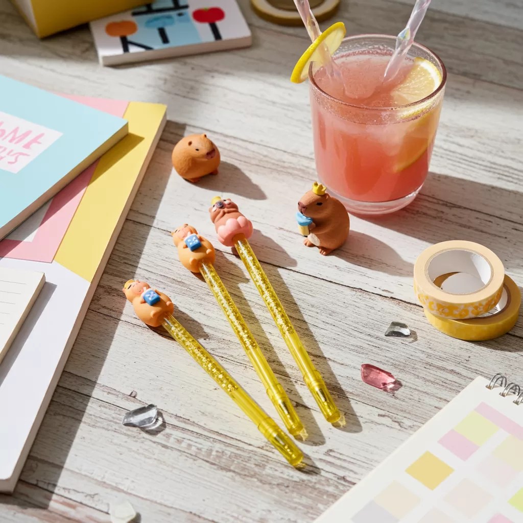 Design Exclusivo Capivara: O topo da caneta apresenta o adorável e popular personagem Capivara, tornando a caneta divertida e um item de coleção. É ideal para estudantes e amantes de animais que buscam uma papelaria com personalidade.