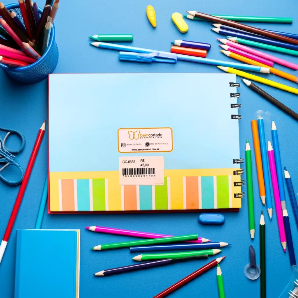 Com capa dura e fechamento em wire-o, oferece durabilidade e facilidade de manuseio. A folha protetora em acetato evita manchas, enquanto a escolha da gramatura do papel (90g ou 180g) permite que você use lápis de cor ou canetas hidrográficas.